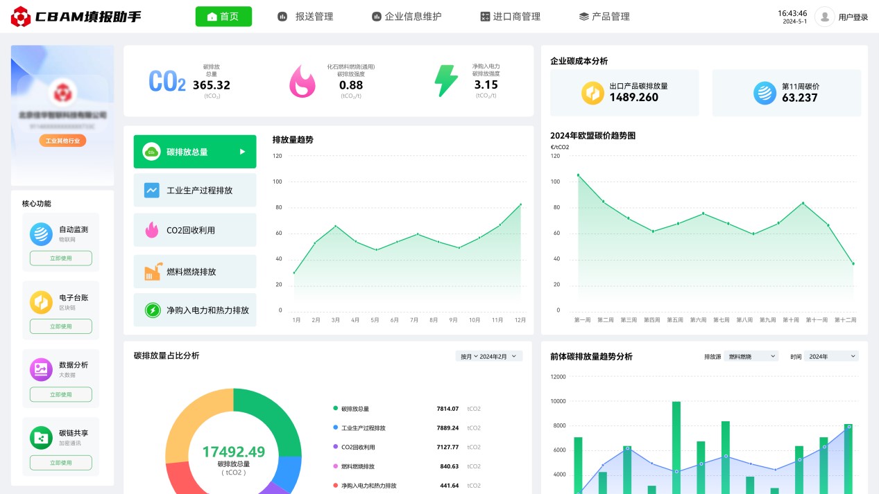 2023年10月1日起,歐盟碳邊境調(diào)整機(jī)制(CBAM)已進(jìn)入過渡期,CBAM涵蓋范圍的出口產(chǎn)品需按時提交產(chǎn)品碳排放報告,未提交報告的企業(yè)將面臨高額處罰。為解決企業(yè)由于官方政策文件理解難度大,專業(yè)門檻高,數(shù)據(jù)搜集難度大,部分?jǐn)?shù)據(jù)缺失無法填等困擾,推出碳關(guān)稅管理平臺(CBAM填報助手),通過數(shù)字化方式,為企業(yè)提供碳數(shù)據(jù)填報、碳數(shù)據(jù)核算、碳數(shù)據(jù)報送、碳數(shù)據(jù)認(rèn)證、咨詢培訓(xùn)等全流程服務(wù)。可極大減少企業(yè)碳排放報送門檻,助力企業(yè)低成本合規(guī)報送碳排放數(shù)據(jù)。